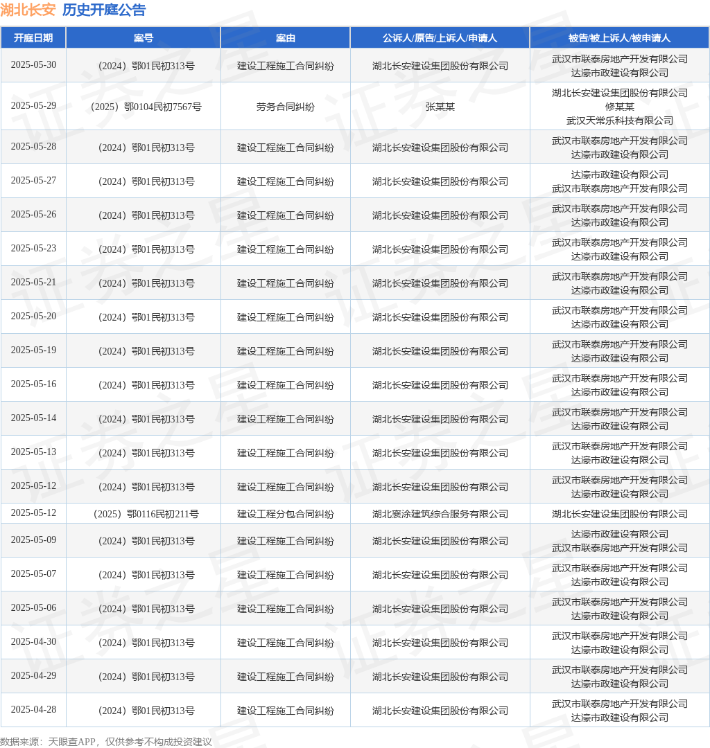 本站消息,根据天眼查APP显示,近日公布了一则湖北长安建设集团股份有限公司作为原告/上诉人的开庭公告,详细内容如下: